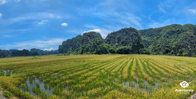 La mejor manera de recorrer Tam Coc es sin duda en bicicleta. ¡A rodar! Pasearemos por los alrededores embobándonos con los bonitos campos de arroz que conforman el llano paisaje de Ninh Binh.